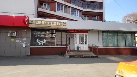 Отдельный вход. Крупный жилой массив, высокий пешеходный и транспортный трафик, паркинг, и остановки общественного транспорта.