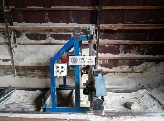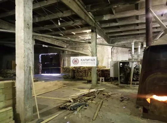 5.Склад инвентарный (1446.3 кв.м). Есть 4-х сторонний бивер для изготовлении вагонки, помещение отапливается дровяной печью.